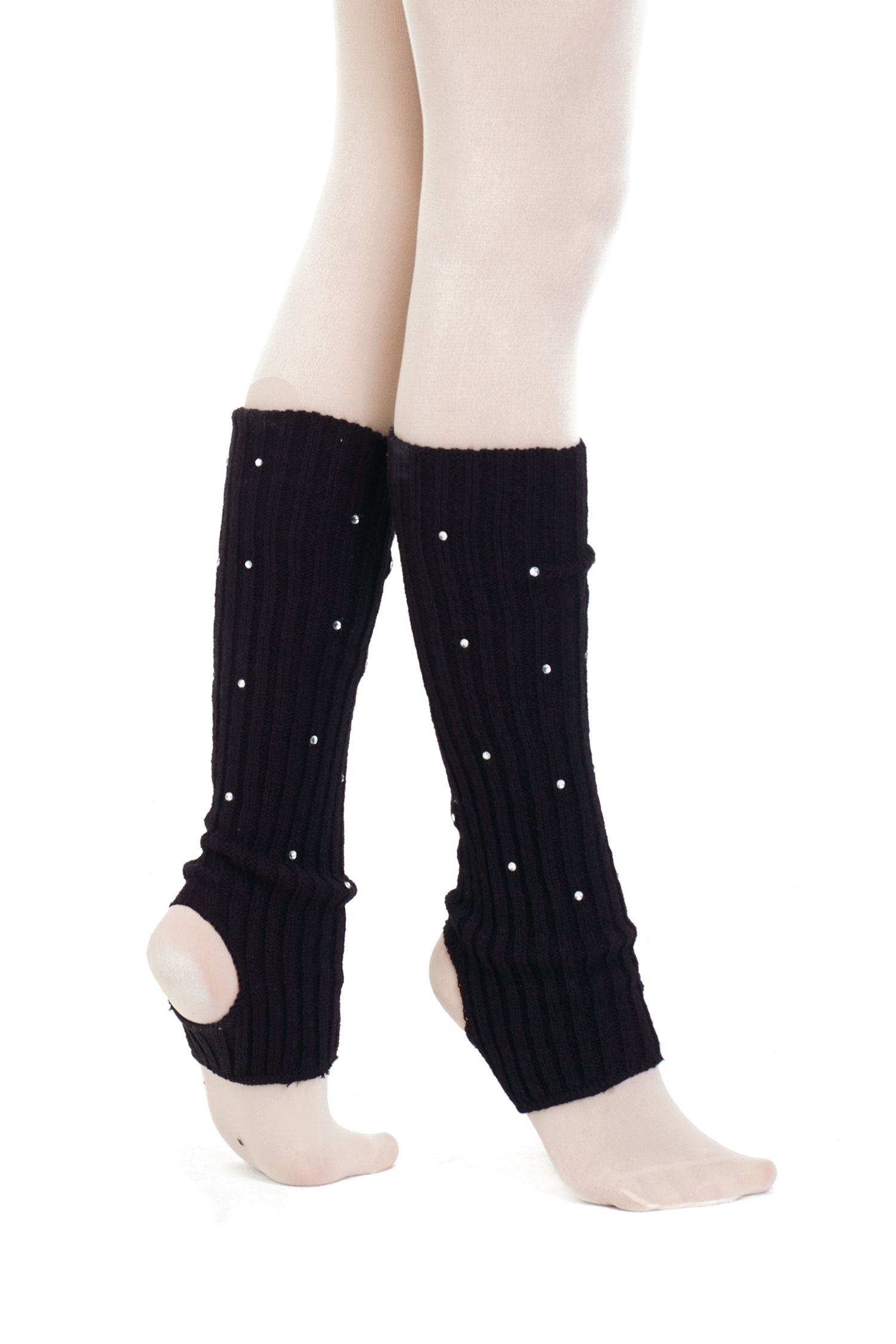 Grovstickade benvärmare med hål för hälen. Små strass-detaljer. Bra att ha för att värma leder och muskler.