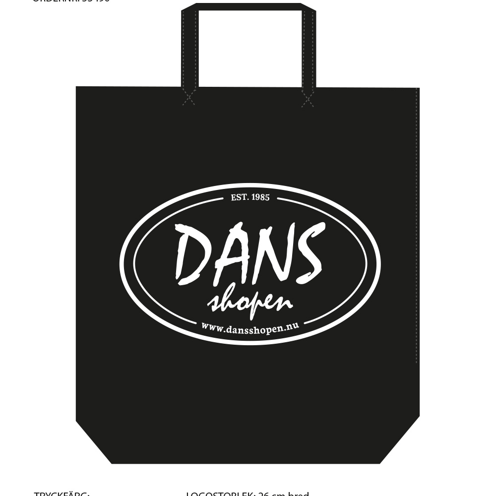 Bomullskasse 41x45x17,5 cm och med 35 cm handtag. Perfekt för dansskor och övriga tillbehör till dansträningen.