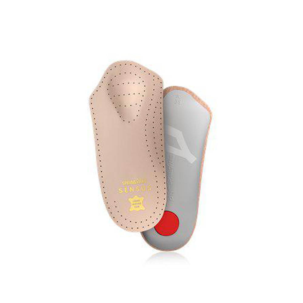 Mjuka och stötdämpande halvsulor. Anatomiskt utformade 2/3-skoinlägg av vegetabiliskt garvat kalvläder. Ger bästa komfort och stöd med uppbyggd hålfot, integrerad förfotspelott och extra dämpning i hälen. Lindrar smärta vid t.ex. hälsporre, plattfot, nedsjunket förfotsvalv samt häl-, knä- och ryggbesvär.