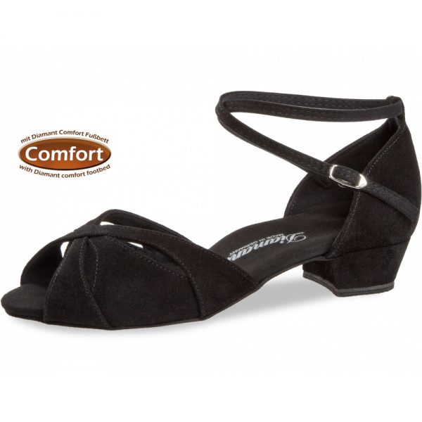 Mjuka dansskor med bekväm passform tillverkade i mockaläder från Diamant. Tryckknapps-funktion. Märkta G som passar normal till bred och kraftig fot.